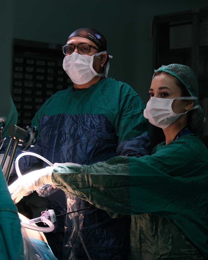 The surgery is performed laparoscopically (minimally invasive). Small incisions are made in the abdomen,